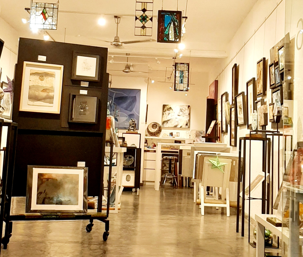 Artworks from 18 participating galleries, jewelry stores, and boutiques along Basilio Badillo Street and nearby areas, including Galleria Dante, Cassandra Shaw, Kathleen Carrillo Galleries, and Peyote People Gallery.